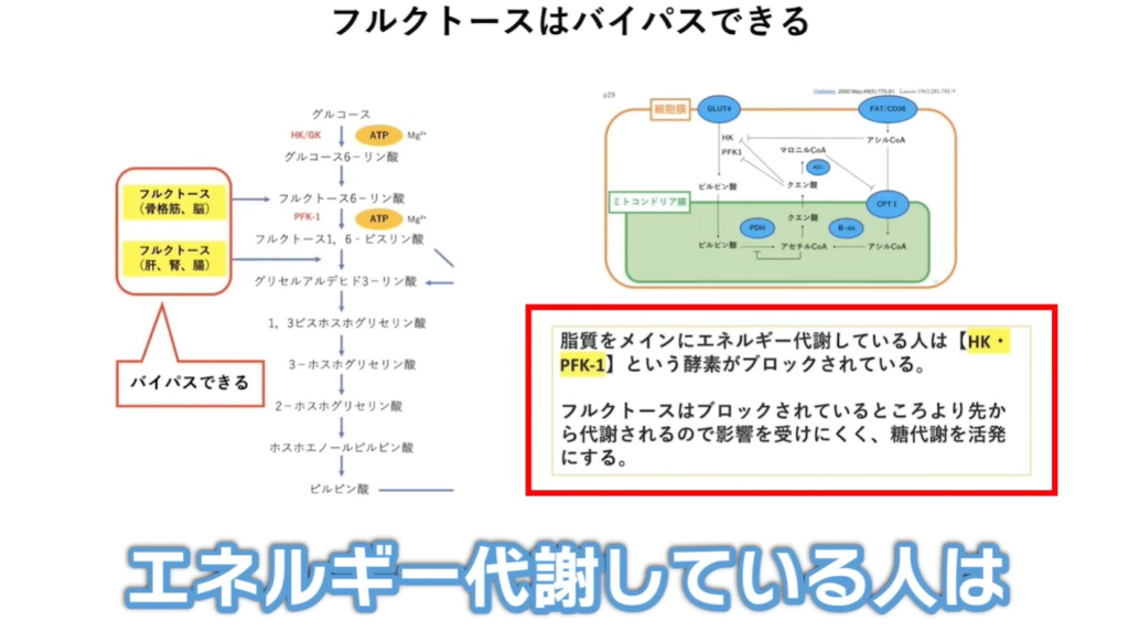 脂質代謝に偏った体は、HK(ヘキソキナーゼ)やPFK1といった糖を分解する酵素がブロックされています。