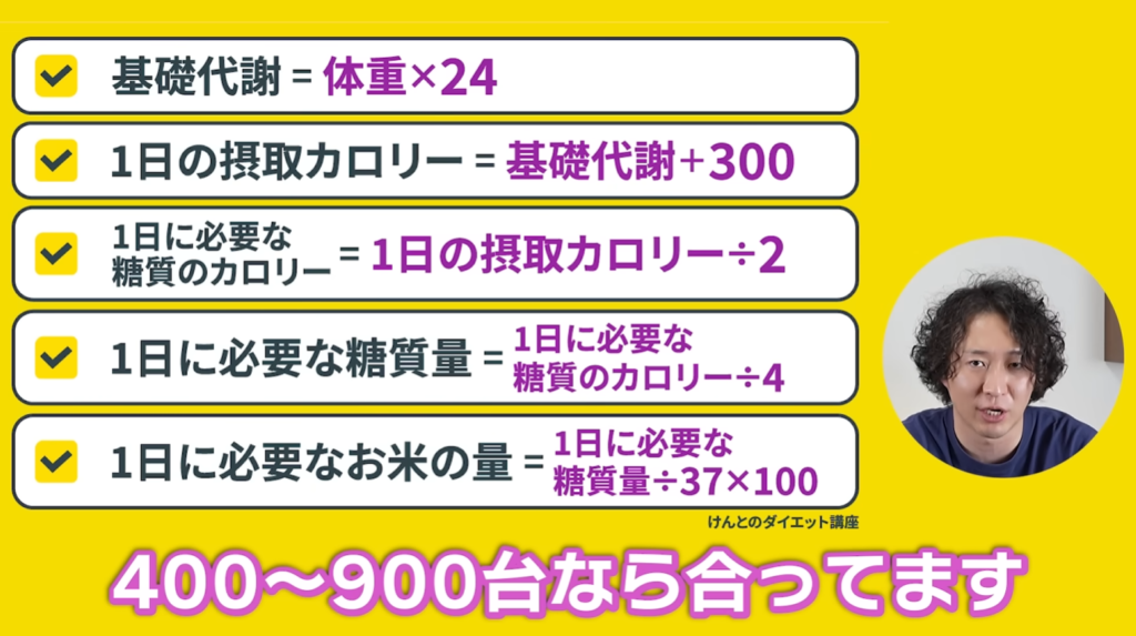 3. 摂取カロリー ÷ 2 = 糖質の目標カロリー